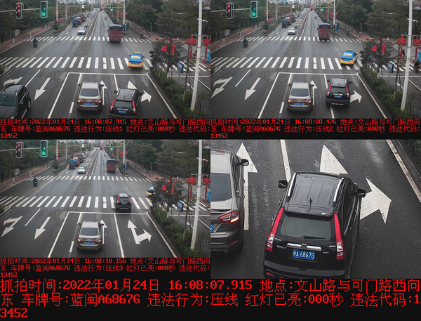 机动车违反禁止标线指示行为曝光(压线)闽A6867G 张某某 文山路与可门路