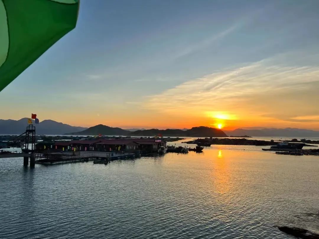傍晚,一道残阳铺水中,半江瑟瑟半江红,整座岛屿都沐浴在余晖的霞光中,影影绰绰,颇有几分“阳光碎落成海”的朦胧意境。