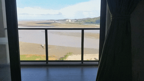 推开玻璃门,走向阳台,一团团蓬松柔软的云,如锦似絮漂浮空中,100亩的滩涂尽收眼底,凭栏远眺,山海相依,风光旖旎。