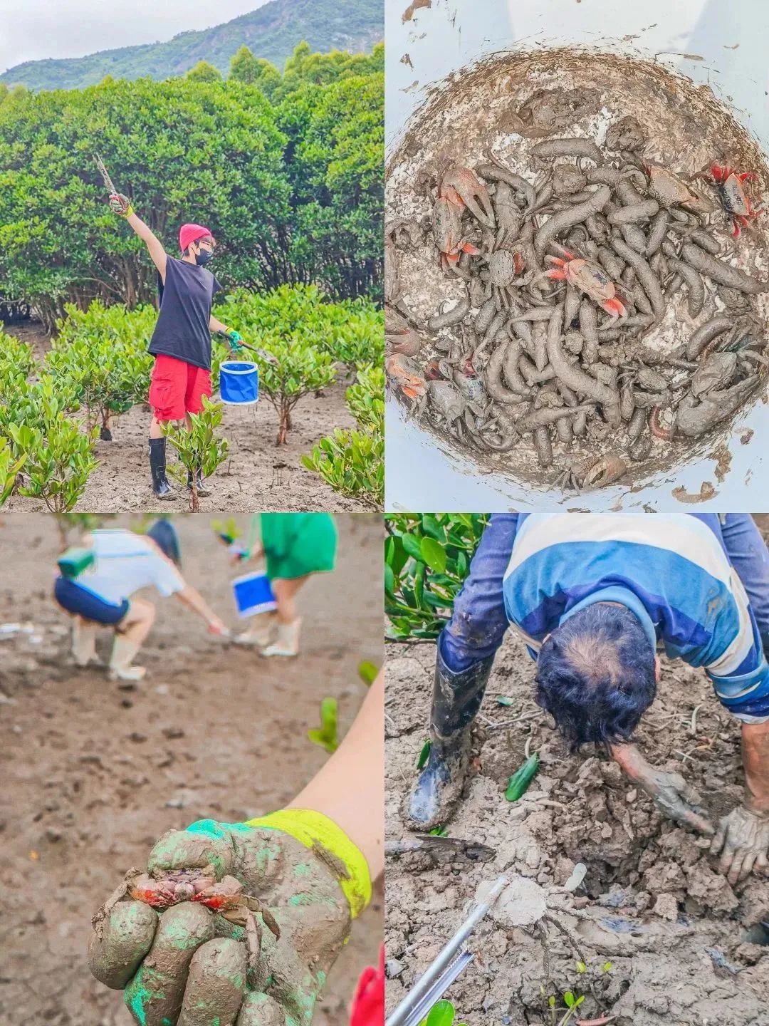 滩涂区还提供赶海活动,换上手套和胶鞋,带上镊子和水桶,体验一回滩涂“寻宝”的乐趣。
