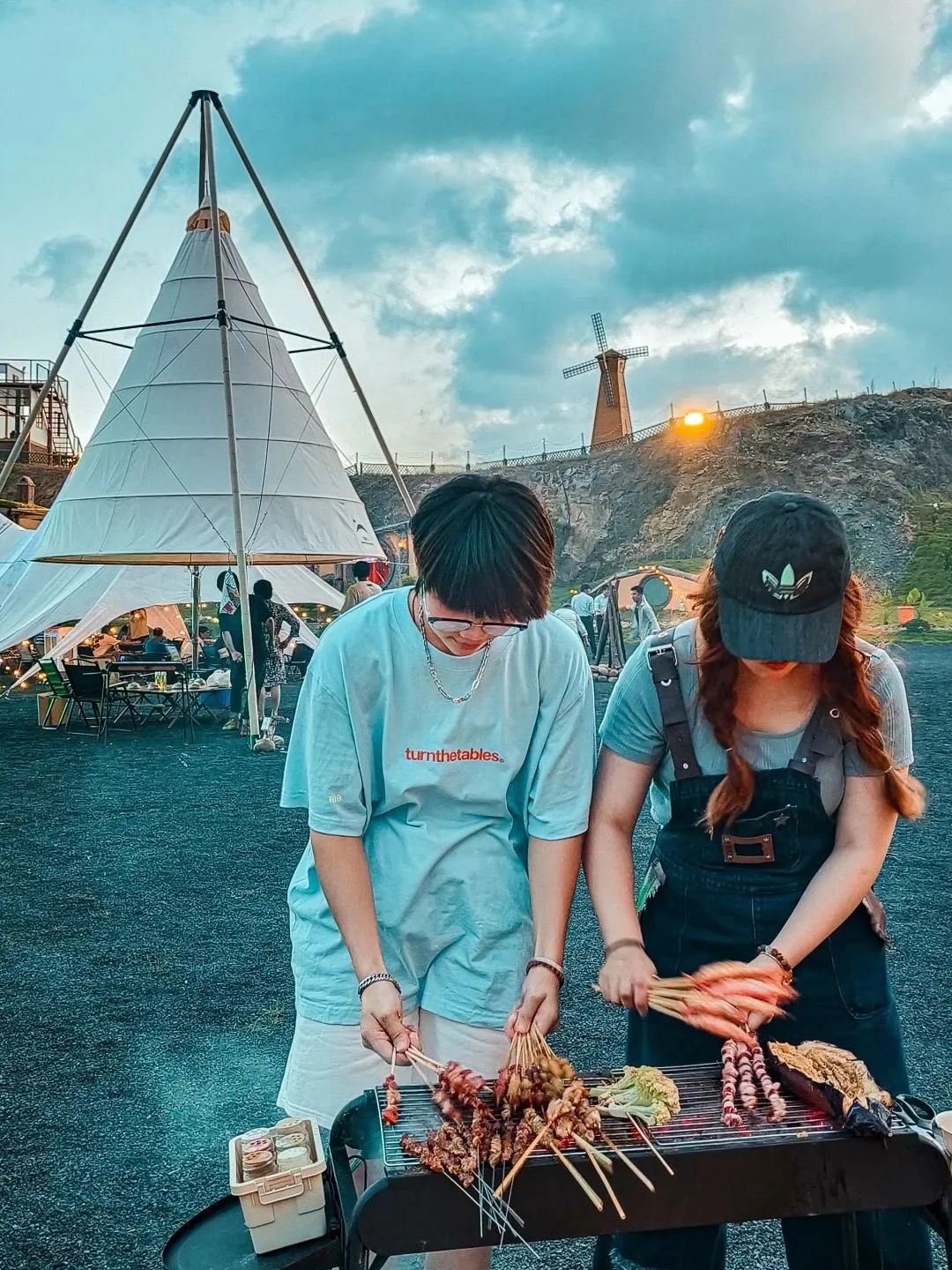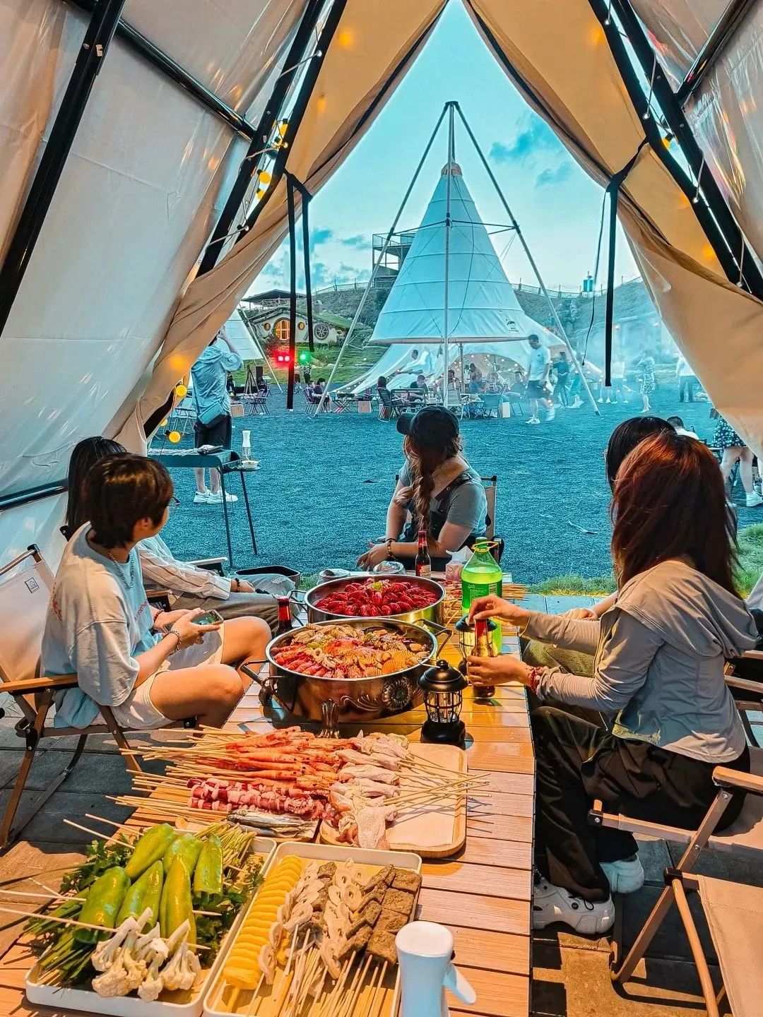 一顶顶帐篷,支起了一片片天地,营地会精心准备各种食材,想怎么烹饪就怎么烹饪,主打一个“成人版”的过家家。