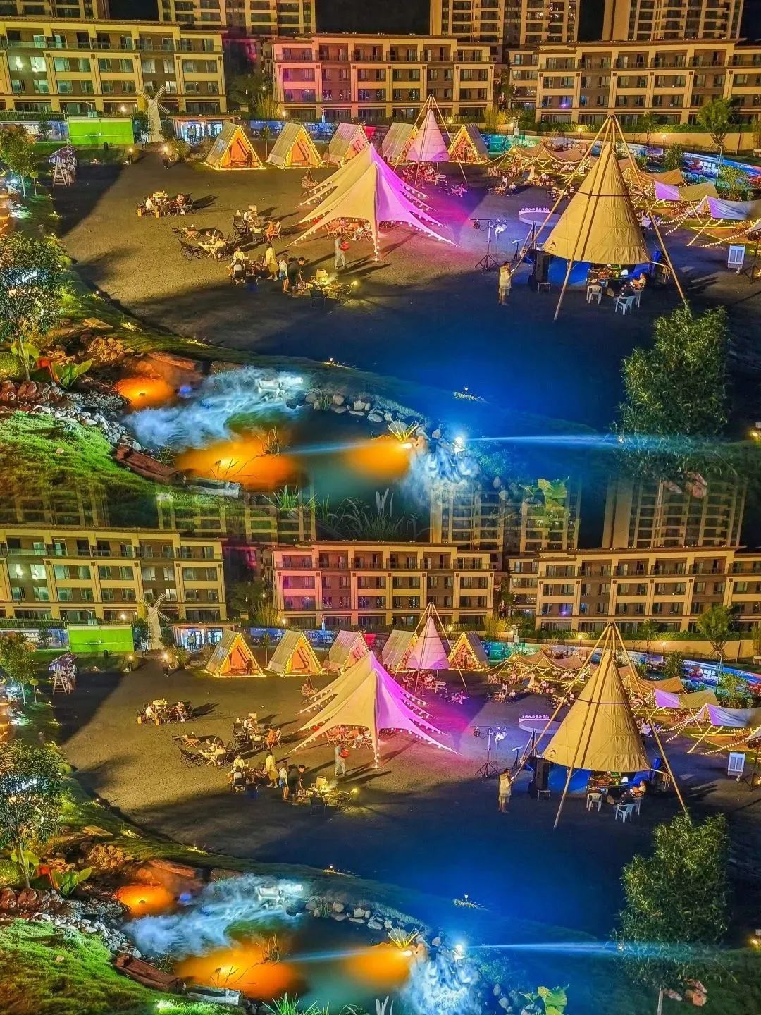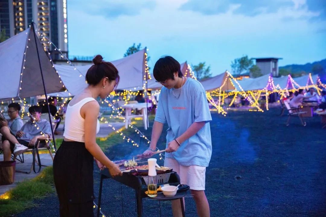营地内的灯光逐渐亮起,夏夜露营的狂欢才刚刚开始……