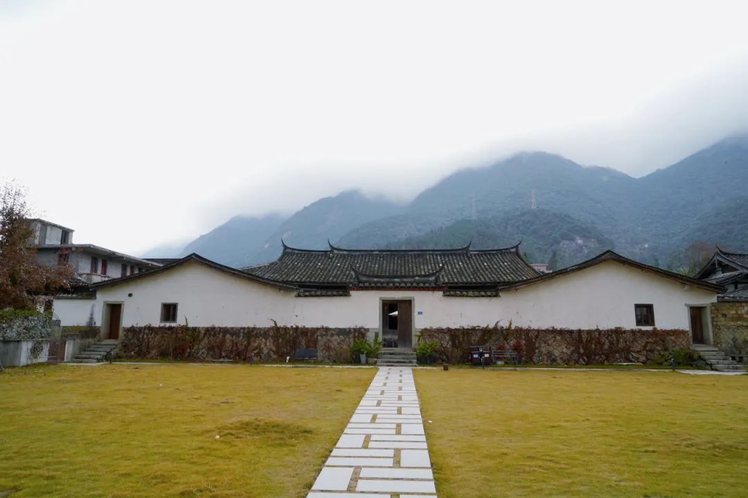 远处山峰层峦叠嶂,近处屋檐翘角鳞次栉比,三座水平排列、结构相连的古厝静静掩映于青山绿水中,听着风中飘来的啾啾鸟鸣和涓涓细流声,好似进入了一幅水墨画,这里便是丹阳镇的三落厝。