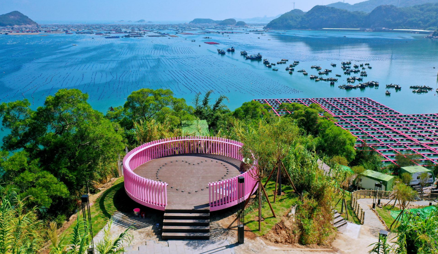 村子的入口处就有一个视野开阔的观景平台,站在平台上远眺,奇山、渔排、港湾、风车等美景一览无遗,能够尽情领略渔村风情的魅力。