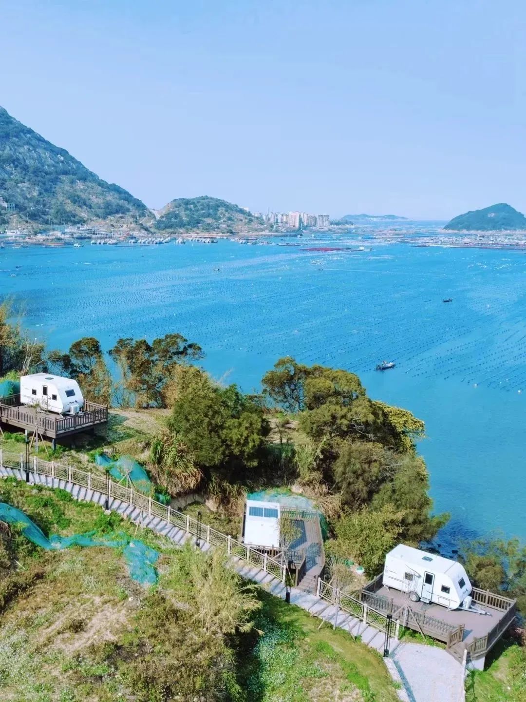 村落附近还有一个虎头山房车营地,现代化的露营设施建设于海崖之上,与周围沙滩、渔排、渔村等滨海风光相映成趣。