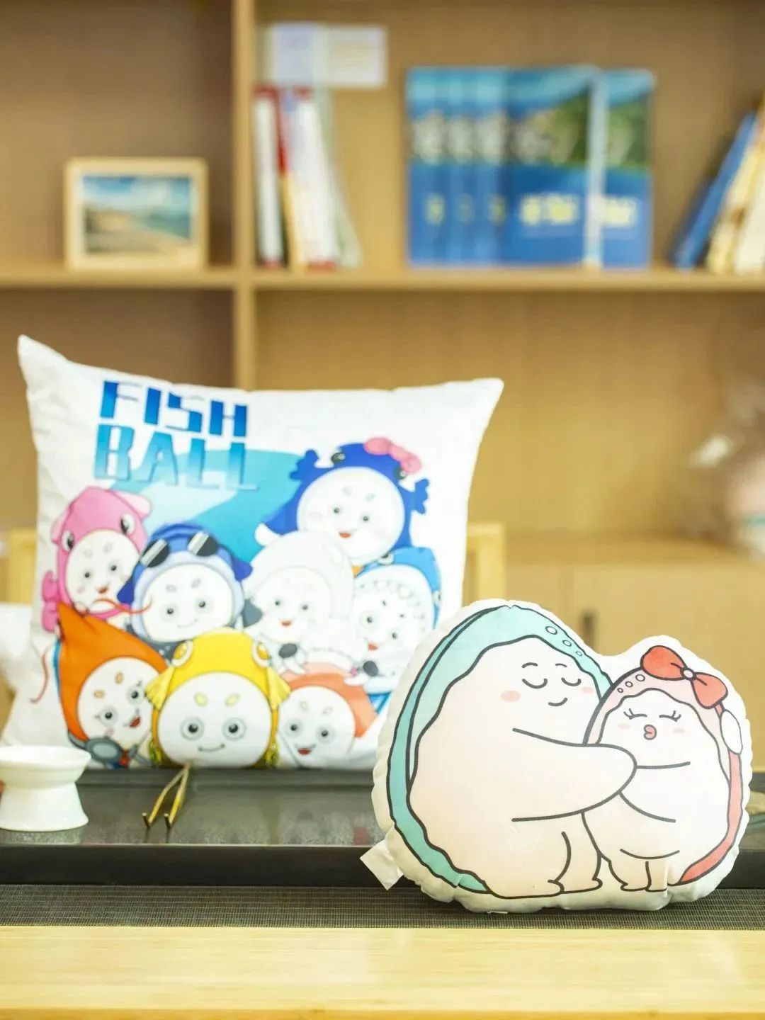 同心村不仅设立了IP打卡点,还推出抱枕、帽子、拌饭酱等一系列文创产品,设计可爱,种类丰富,是谁还没把“鲍帅”“鲍美”带回家呢?
