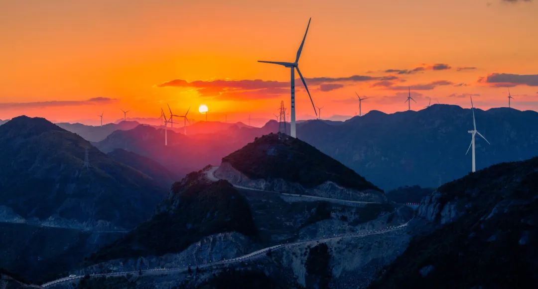 当白昼进入尾声的时候,是旗冠顶一天中最温柔的时刻,天空渐变的颜色如流水般变幻,由湛蓝过渡为橘色,再在绯红的暮色中,欣赏风车与落日相映生辉。