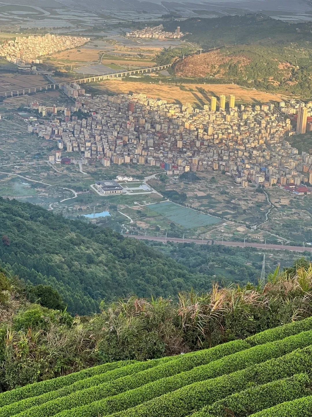 抵达制高点——炉峰山观景台,放眼望去一片蓊郁,绿色波纹蜿蜒缠绕于山野之上,宛如一块绿茸茸的地毯。