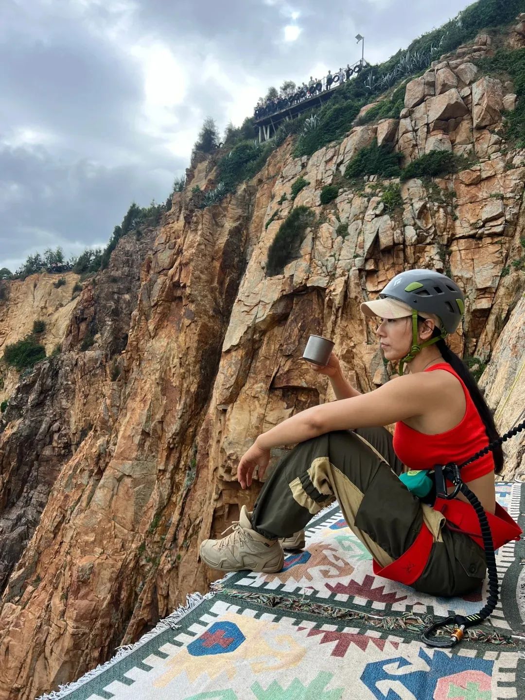 抵达海崖上的悬空平台,心中的成就感瞬间爆棚,手举咖啡,抬头欣赏无边的绝佳海景,呼啸而来的海风,都好似在为战胜自我的勇敢者喝彩。