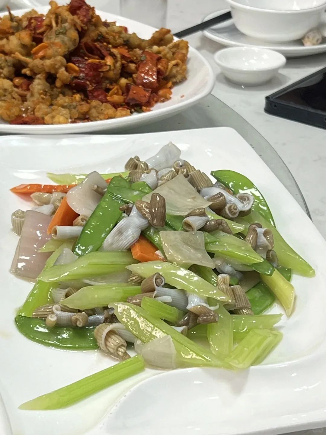 鲜脆的西芹自带淡淡的清香,与弹牙的海地龙、Q弹的钉螺肉都是绝佳搭配,西芹保持脆爽,海鲜锁住鲜味,鲜香交融,带来美妙的味蕾享受。
