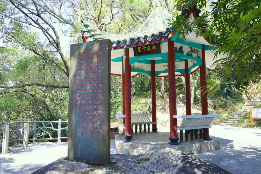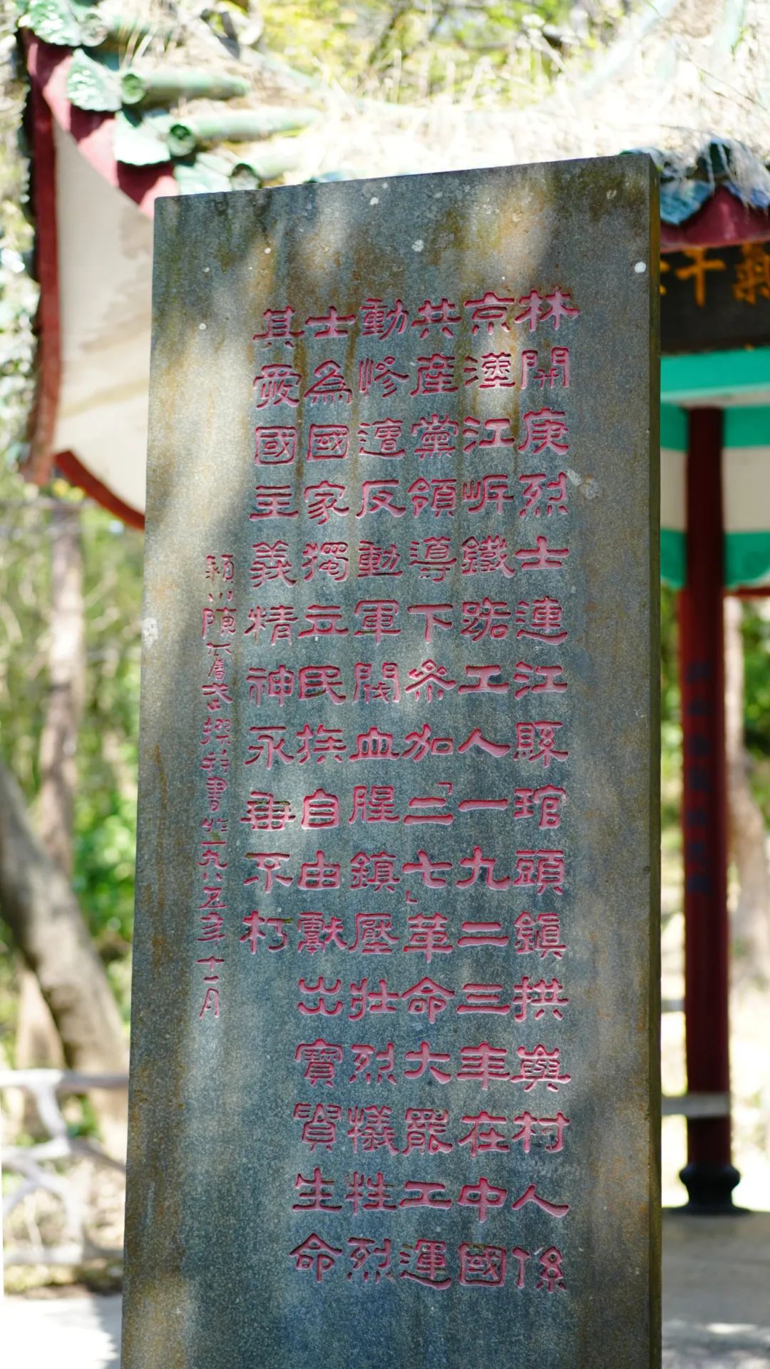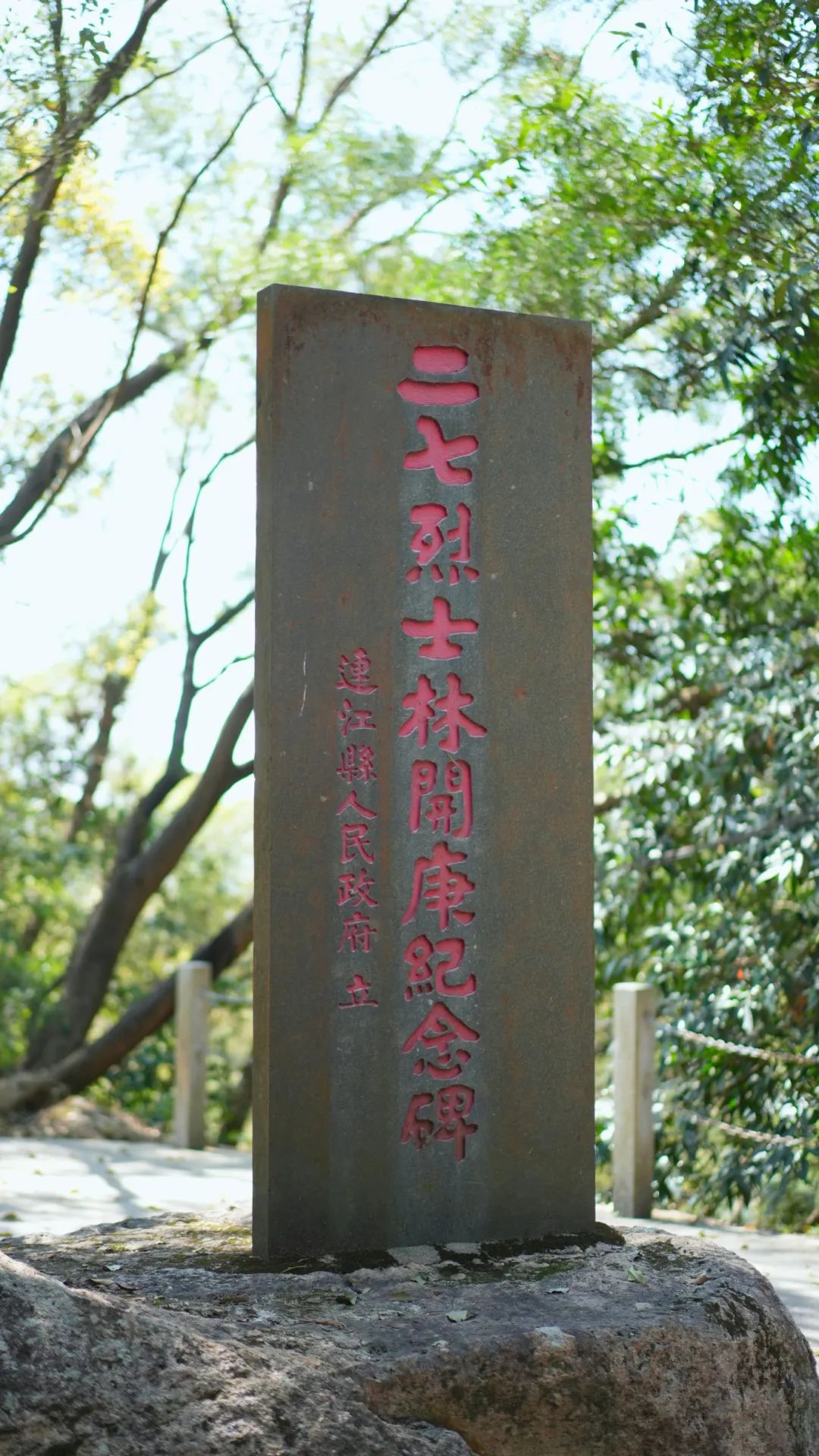 纪念碑以天然岩为碑座,由福建省著名书法家陈奋武撰文并书,读着一列列简短却醒目深刻的文字,思绪飘远,仿若身处那烽火岁月,看到烈士在无畏冲锋、浴血奋战的身影。