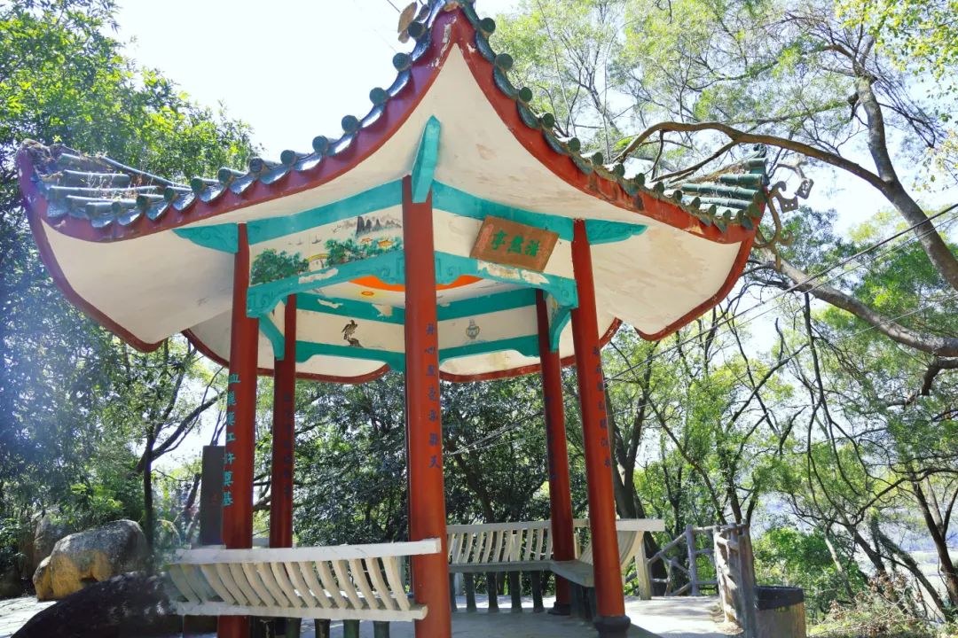 亭为钢筋混凝土结构,落地面积17平方米,高4.5米,六角形翘角,屋面铺琉璃瓦,立柱之间连以座凳。