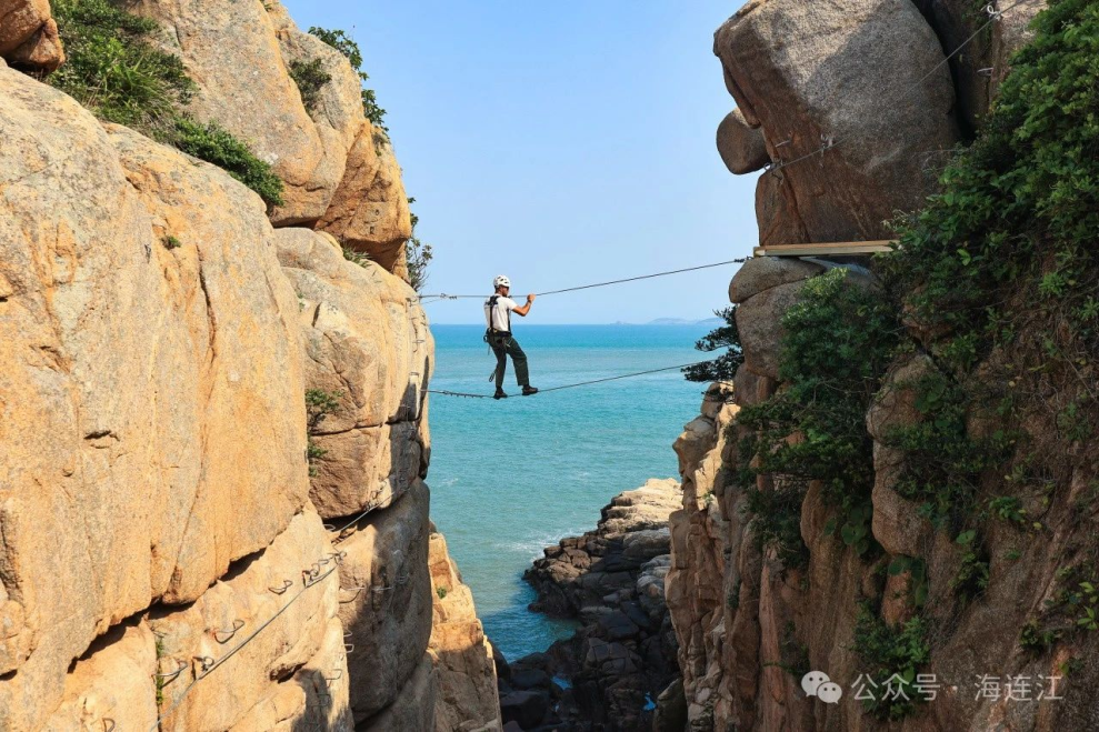 自五一起,公园内月光峡谷飞拉达项目正式对外开放,一步一步攀爬到最高处,眼前是蔚蓝大海,脚下是惊涛拍岸,在峭壁与浪涌间挑战自我,收获一场肾上腺素飙升的夏日冒险记忆。