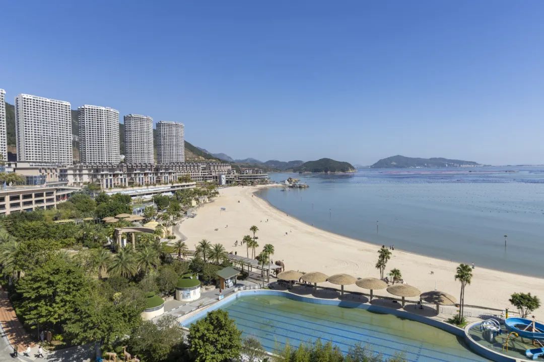 踏入定海湾山海运动小镇,抬头是果冻色的天空,脚下是会亲吻脚趾的细软白沙,蓝天与大海无缝衔接,微风轻拂,浪声低语,是让人一眼心动的海滨之景。