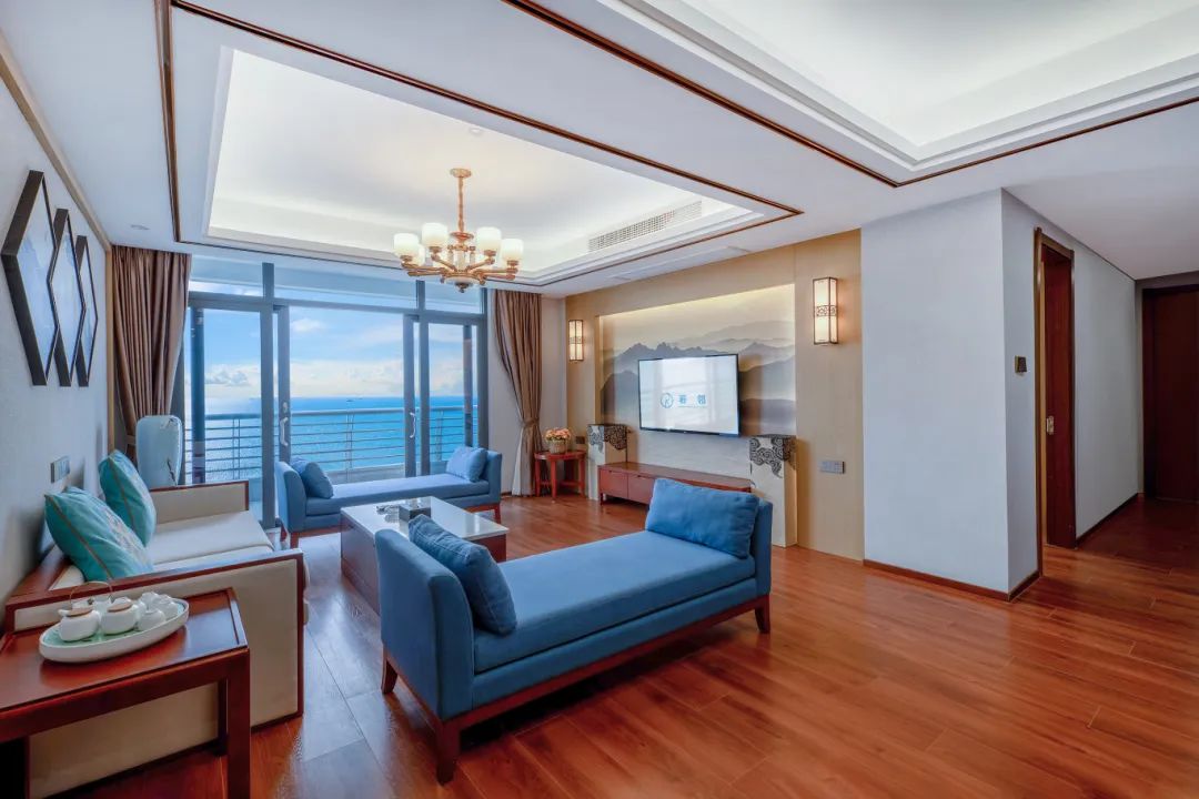 推门而入,简约时尚的设计基调中,巧妙融入中式古典的雅致韵味与网红海岛的浪漫风情,一线海景房,更是让窗外温柔海景成为客房里一幅幅生动的装饰画。