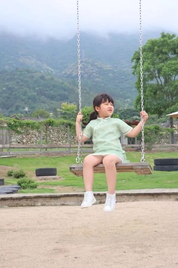溪边浅滩处,儿童乐园以石磨盘铺就童趣小径,一家人围坐溪畔惬意露营,大人谈天赏景,萌娃荡秋千、捉鱼嬉戏……共度治愈温暖的亲子时光。