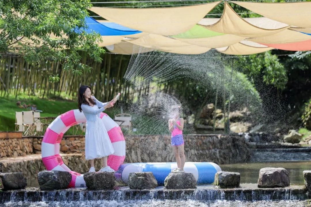 在「山泉泳池」里踏水嬉戏;换上国风汉服,游古厝、拍写真;玩转「杜棠水街」非遗手作;在「自然无动力乐园」肆意嗨玩……不论在哪,总能体验到悠然的闲趣之乐。