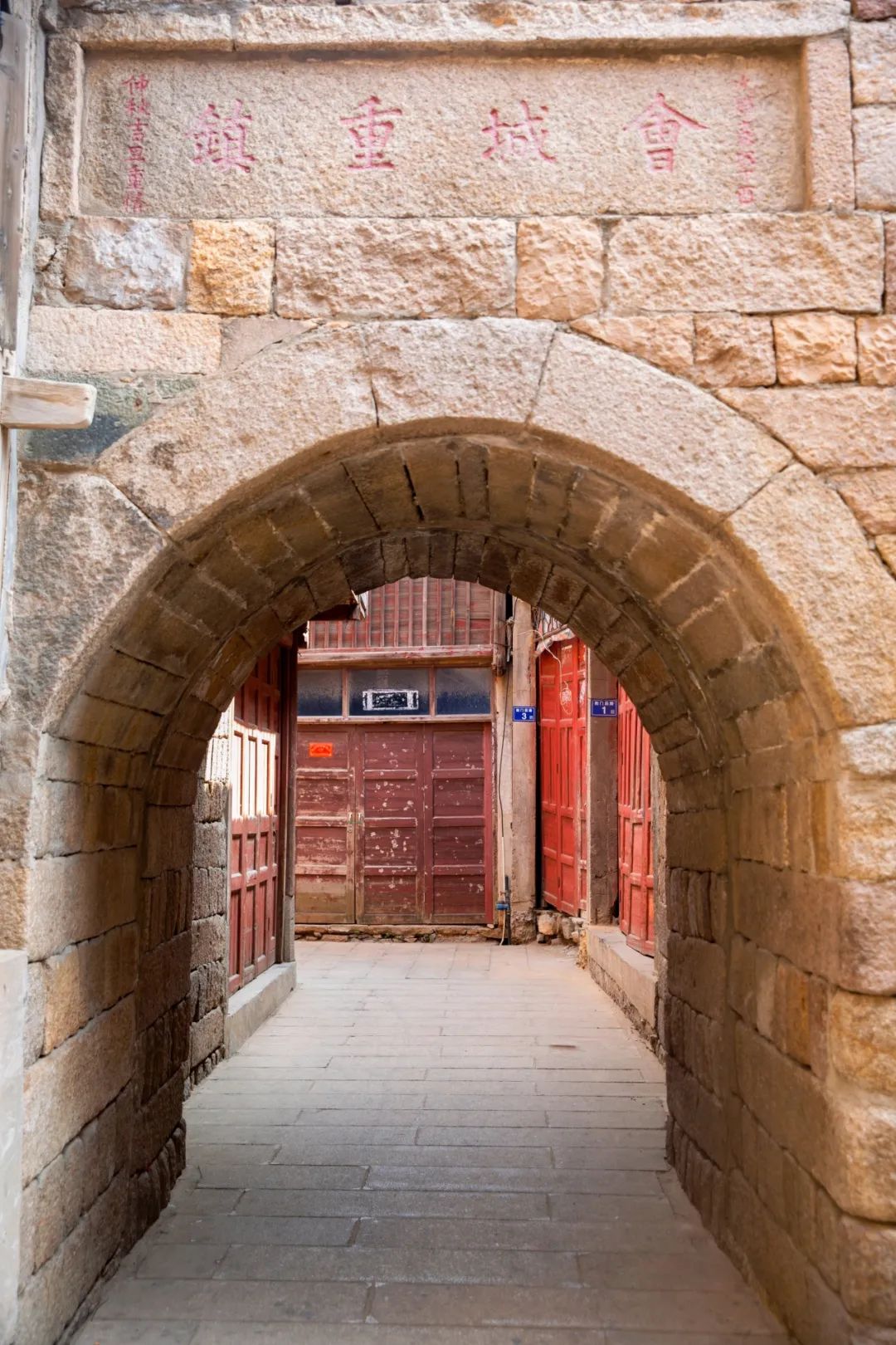 再往里走,在西南侧接连筑有三道拱洞城门,即为“三重门”,并在城门额上镌刻“会城重镇”四字。