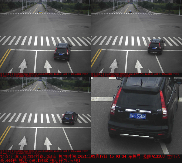 机动车违反禁止标线指示行为曝光 (压线)陕A133U8 陈某某 迎宾大道与站前路
