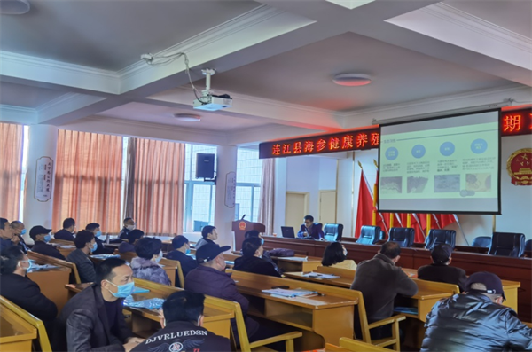 2月28日,为贯彻落实县委、县政府关于《连江县乡村振兴攻坚行动实施方案》的工作要求,由县人社局、县海渔局牵头主办,县老科协承办的“2022年第一期海参健康养殖技术培训班”在筱埕镇开班。本次培训班邀请省水产研究员杨求华博士现场授课,筱埕、黄岐、苔菉、安凯等几个沿海乡镇海参养殖户及企业家参加。