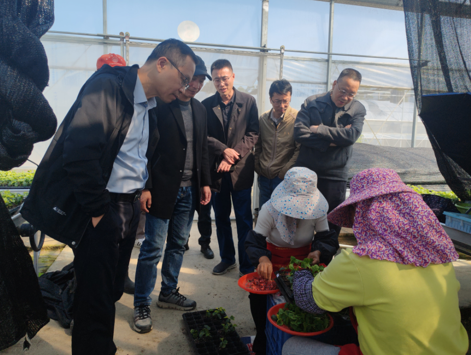 在丹阳镇昌育育苗基地察看嫁接作业 在马鼻镇雨点家庭农场进行春耕备耕指导