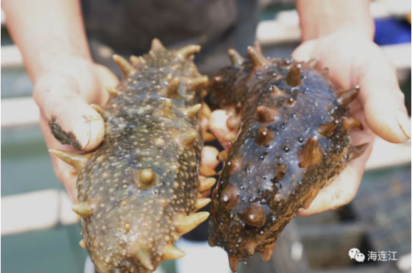 “今年海参长势不错,体格都很‘胖’。”养殖户刘用胜兴奋地向记者展示刚刚捕捞上来的海参,它们肉刺挺拔,体态丰盈,有的比手掌还大。四个多月前,这些海参还躺在北方的海底。
