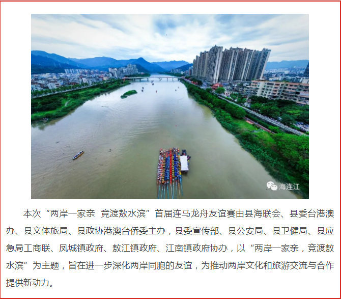 6月18日(农历五月初一)上午,首届连马龙舟友谊赛启动仪式在县妈祖庙广场举行,县领导俞传华、陈辉文参加。