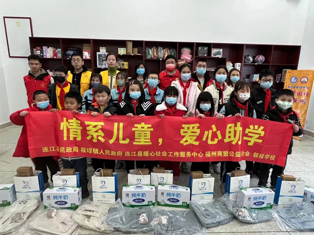 2023年2月23日,筱埕镇社工站公益行携手福建省商盟公益基金会开展“情系儿童,爱心助学”活动。