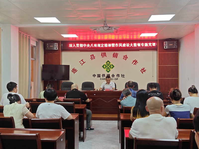 7月16日上午,连江县人民政府党组成员、副县长周守龙到连江县供销社围绕深入贯彻中央八项规定精神暨作风建设大整顿讲授专题党课,县社机关、资产公司、农资公司全体干部职工参加活动。
