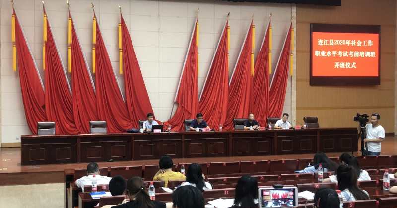 为提高本土社会工作者职业水平考试通过率,造就一支数量足、结构优、能力强、素质高的社会工作专业人才队伍,推动当地社会工作向本土化、专业化、职业化和跨越式发展。2020年9月19日,由连江县民政局主办的全国社会工作者职业资格水平考试考前培训在连江县大会堂顺利开班。本次培训为期10天,将以线下集中面授与线上网络教学为主,邀请了省内具有丰富考前培训、辅导经验的高校专家老师分别开展助理社会工作师和社会工作师考试专题授课,全县近400名考生报名参加培训。