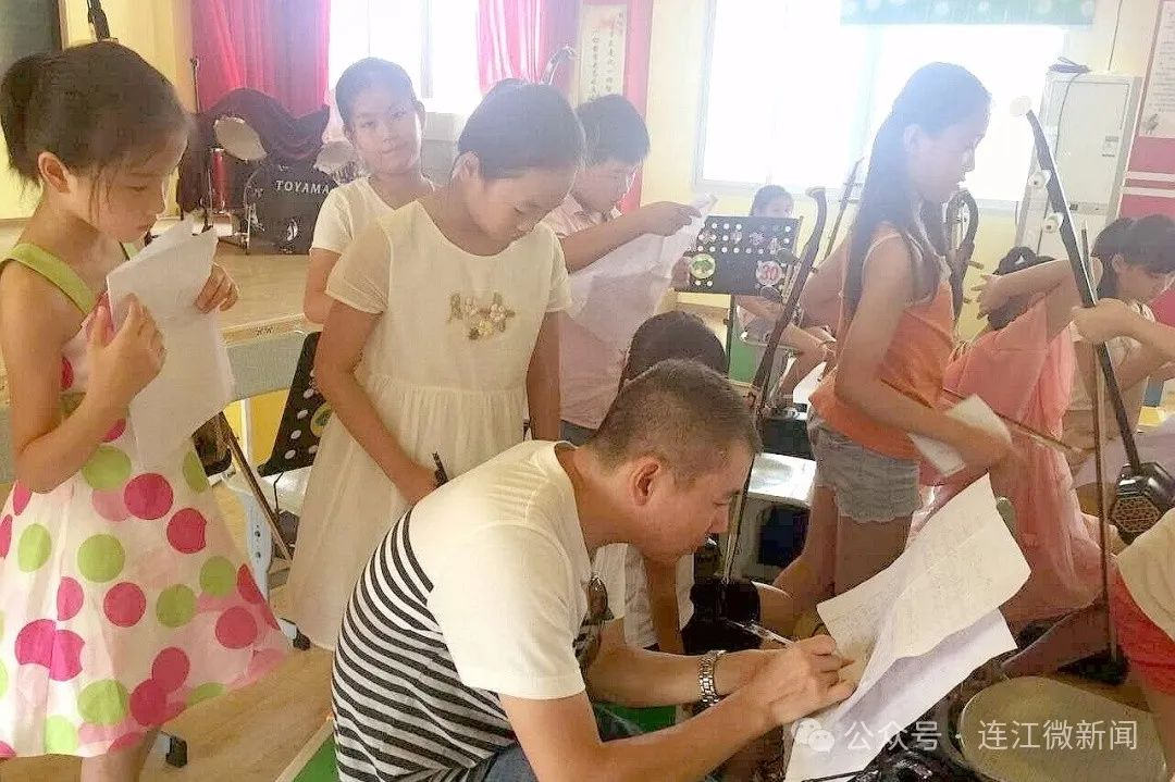 滕祖棋教学生们乐器演奏