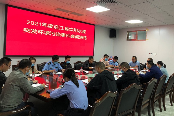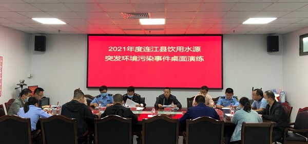 2021年10月28日上午,连江县政府组织相关县直单位和相关乡镇人员,在连江生态环境局举行2021年度连江县饮用水源突发环境污染事件桌面演练。