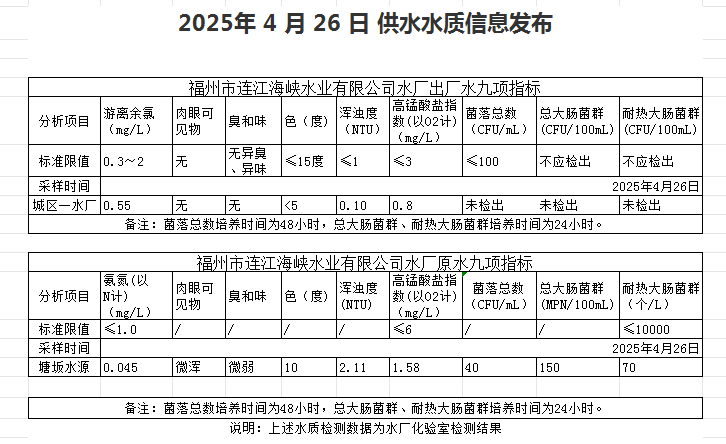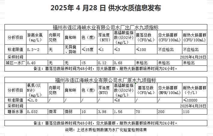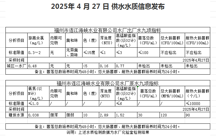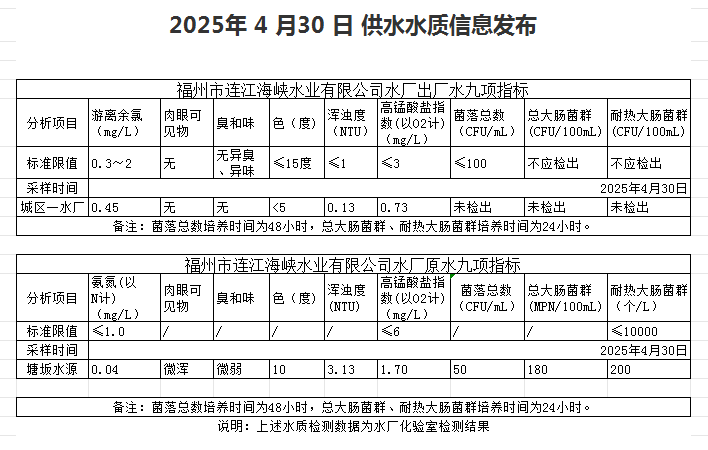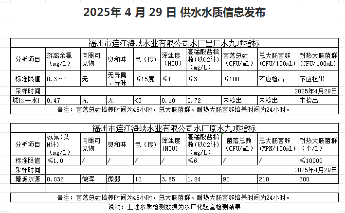 2025年4月21日-4月30日 供水水质信息发布