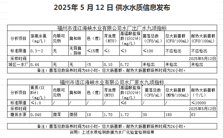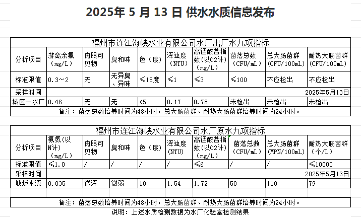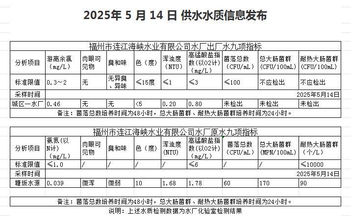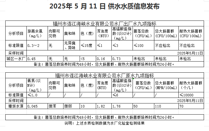 2025年5月11日-5月20日 供水水质信息发布