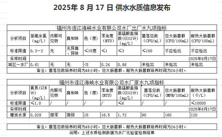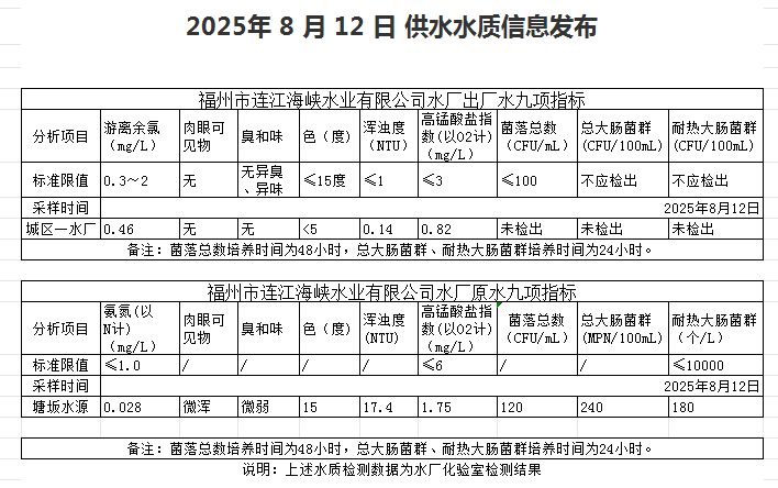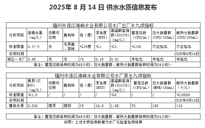2025年8月11日-8月20日 供水水质信息发布
