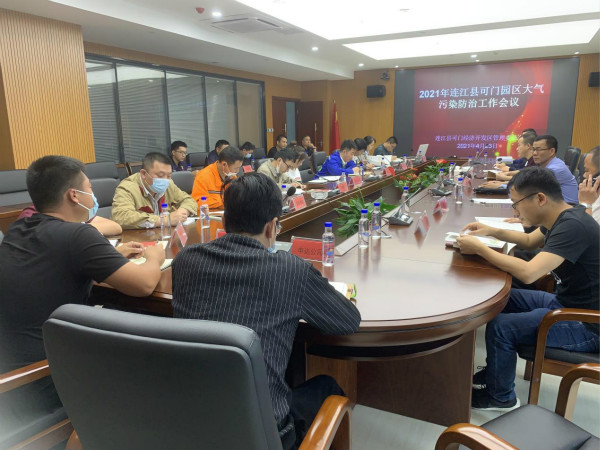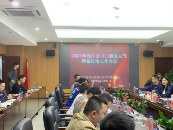为进一步推进连江县可门工业园区大气污染防控工作,2021年4月23日上午,连江生态环境局在可门管委会会议室召开2021年连江县可门园区大气污染防治工作会议,可门管委会、福建申远新材料有限公司等13家可门园区大气污染重点企业以及坑园、下宫两个乡镇出席会议。