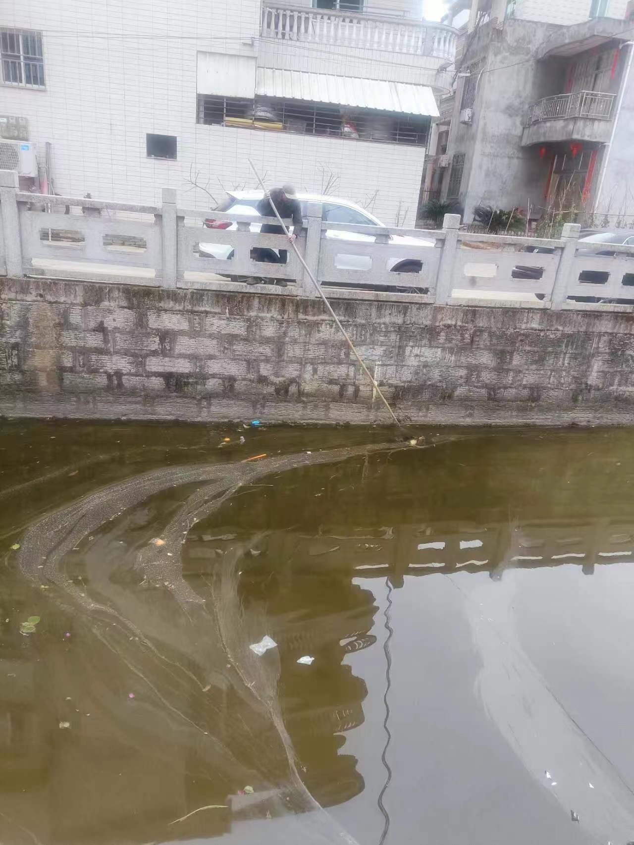 近日,江南镇连兴村对村内河道开展漂浮物清理工作。