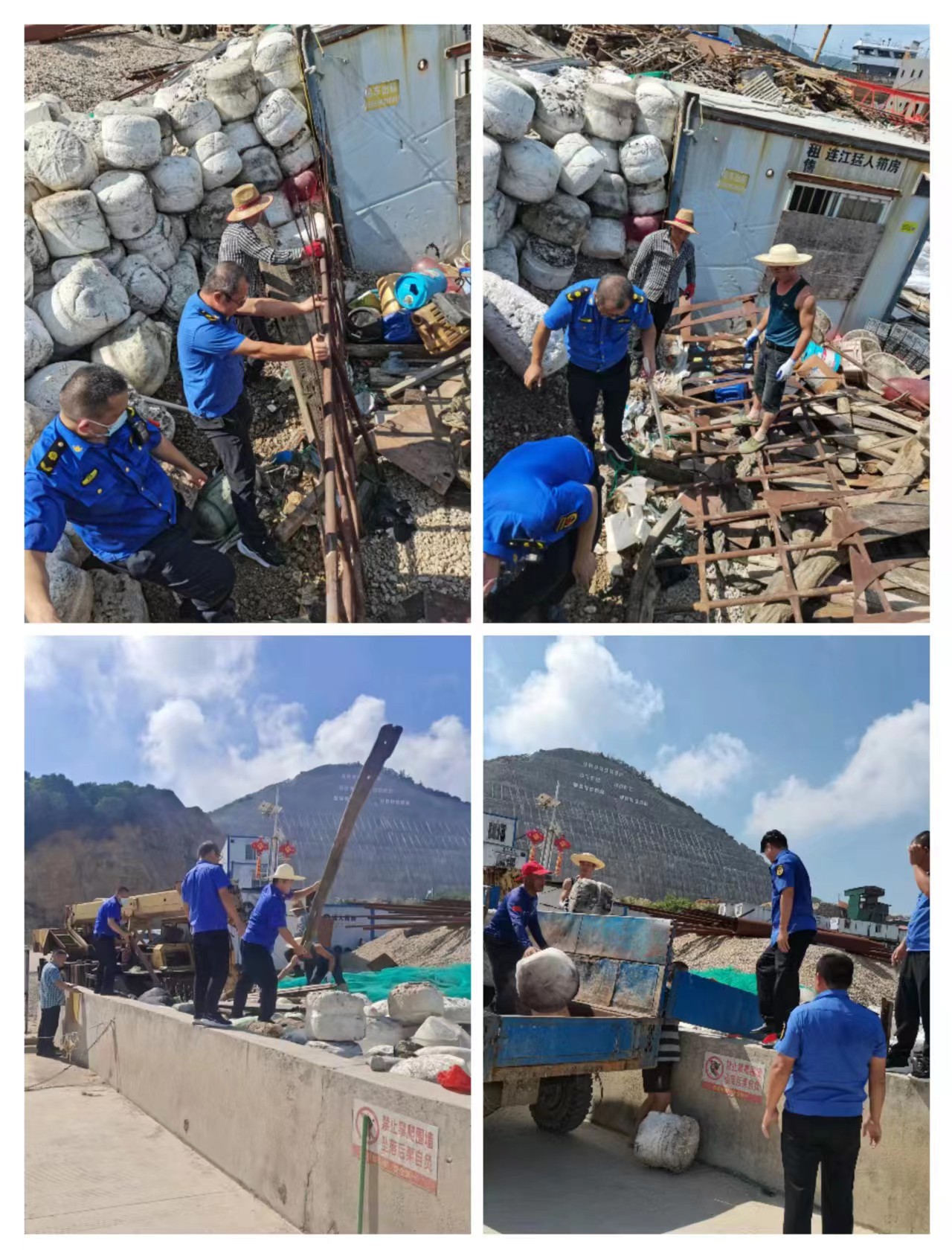 8月29日上午,陈宏主任带队前往中心渔港,对围挡占地情况进行拆除,并对厂区内、隐蔽角落白色泡沫开展清理整治工作。
