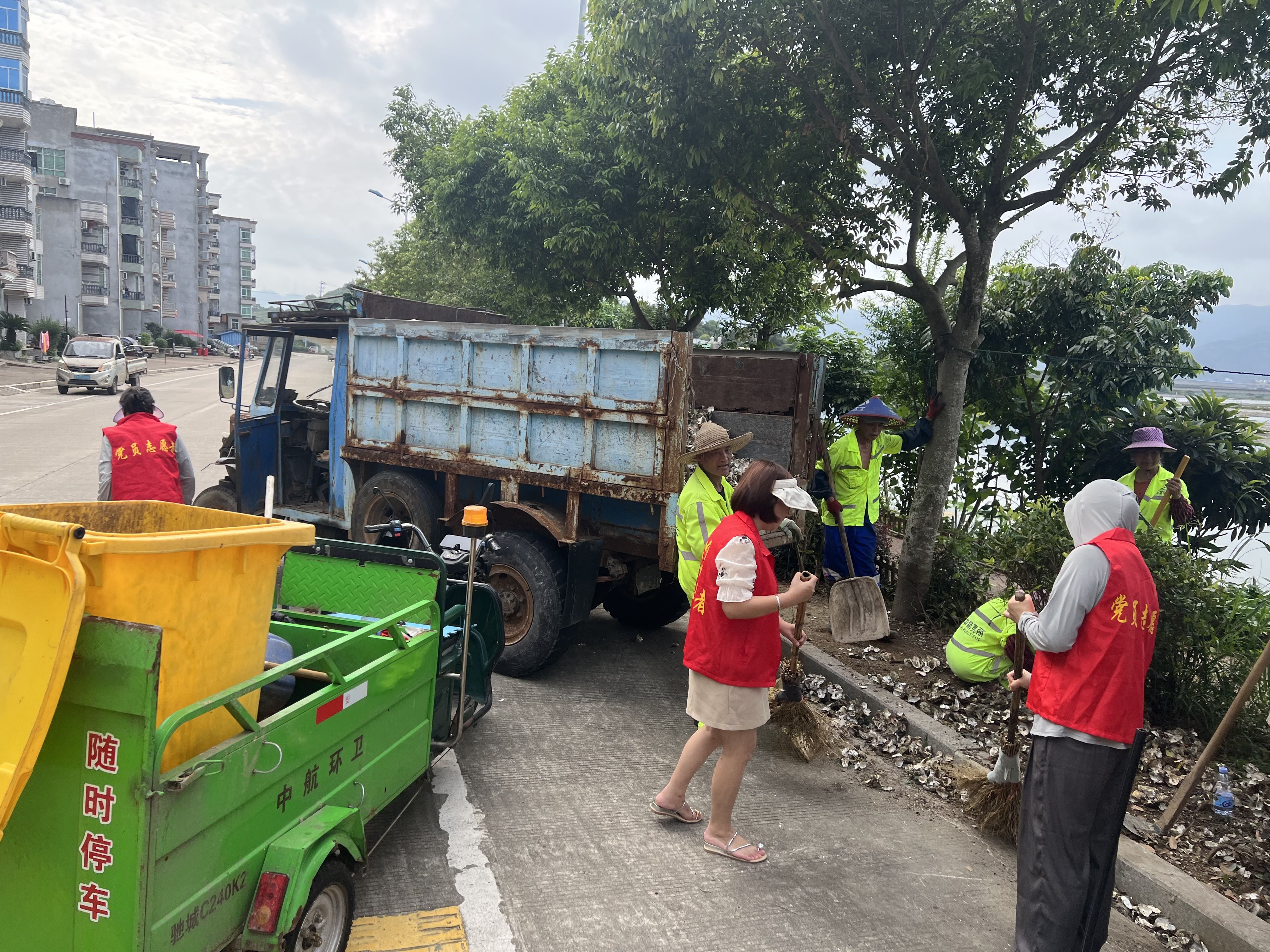 6月25日,坑园镇村干部在各村持续性开展环境卫生整治行动。