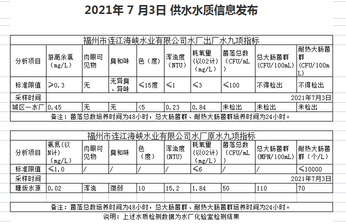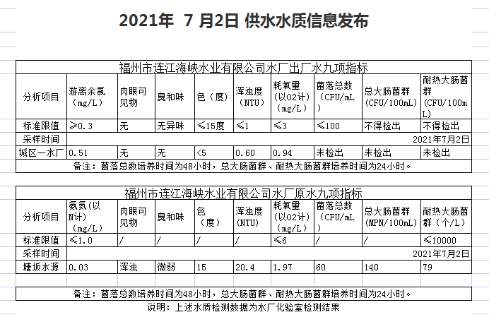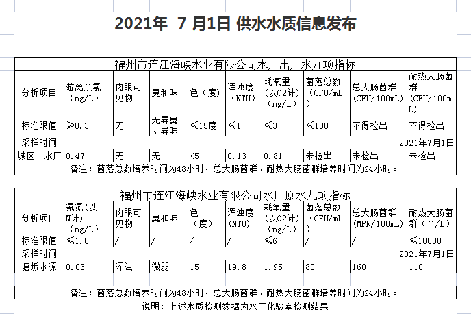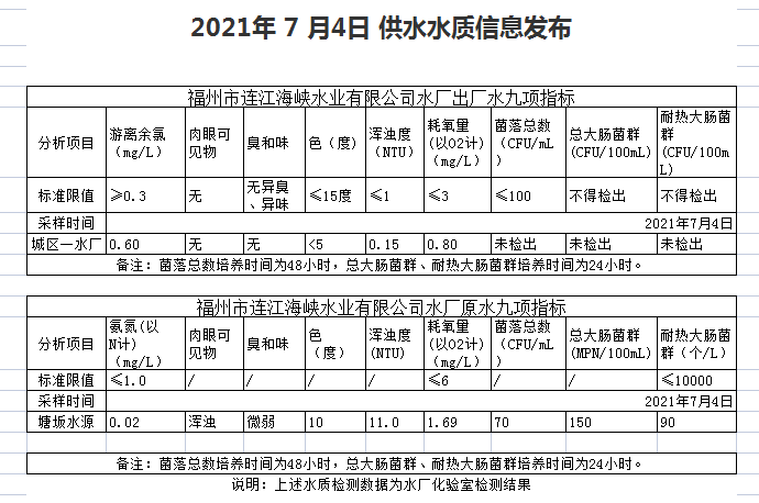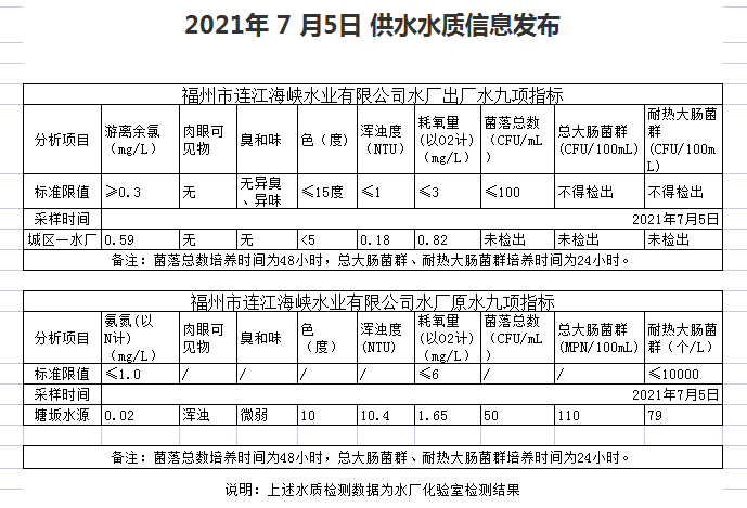2021年7月1-5 日 供水水质信息发布