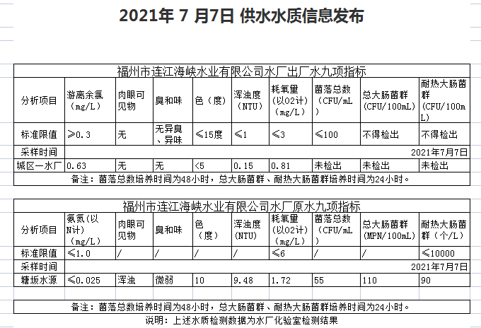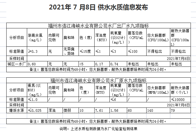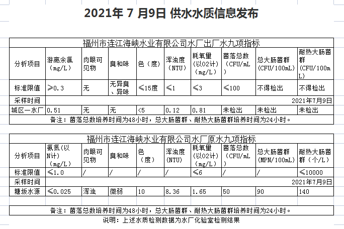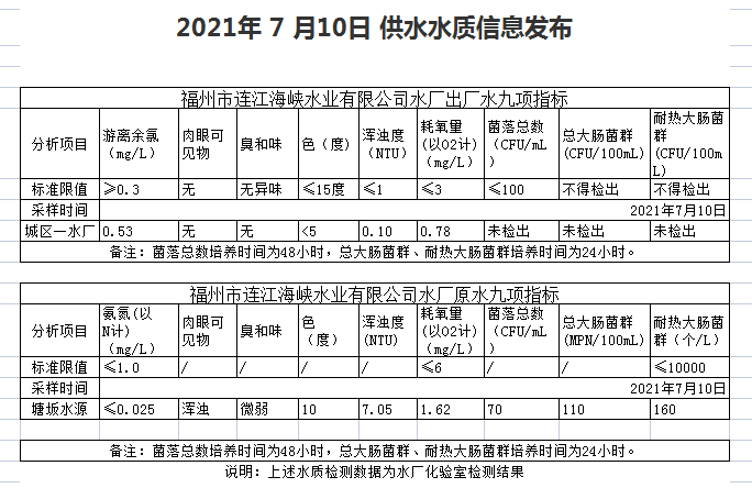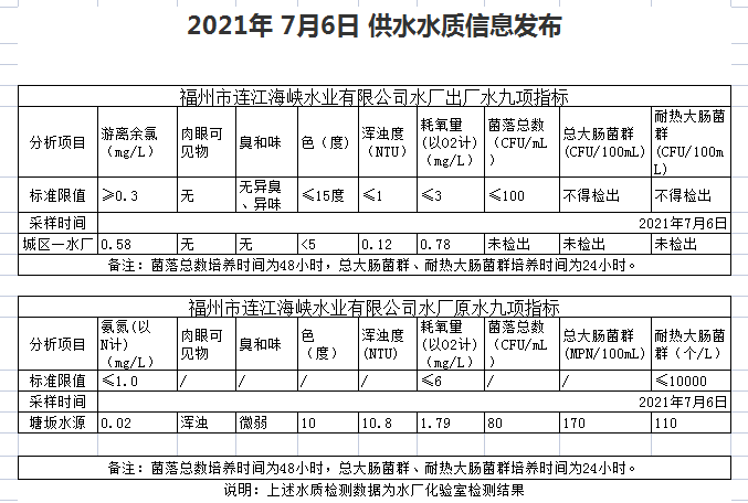 2021年7月6-10日 供水水质信息发布