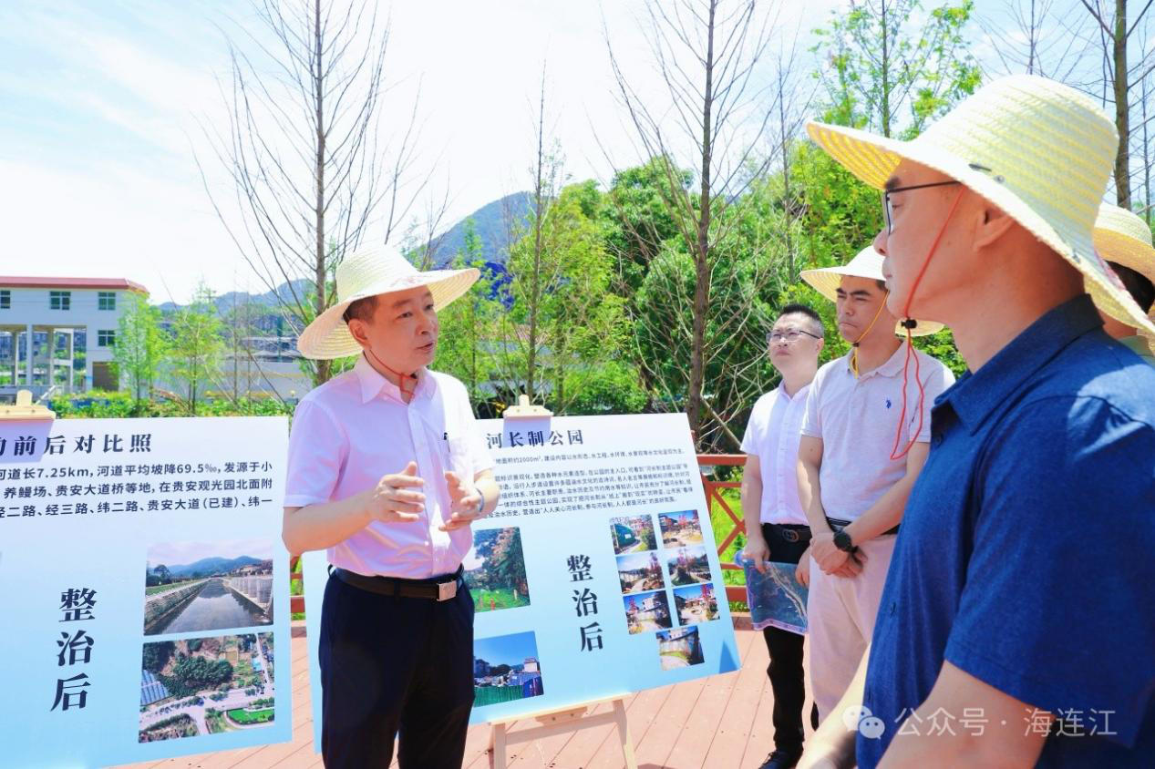 陈劲松来到洋头自然村,实地察看洋头溪综合治理及贵安河长制公园建设情况,并对乡村人居环境整治、河道两岸空间改造提升、绿化景观等提出优化方案和指导意见。