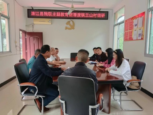 图为县残联一行与潘渡镇兰山村村干部进行座谈交流