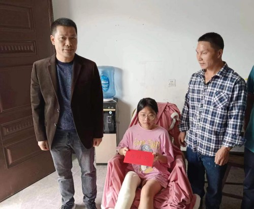 座谈会后,县残联一行来到残疾群众家里慰问并送上慰问金,询问残疾人的身体状况及生活情况,叮嘱他们要以饱满的热情笑对生活,一名肢体残疾女孩因手术目前休学在家,胡主任详细了解情况后叮嘱女孩待康复后一定要重返校园,继续学习。此次活动,我会共走访慰问7户残疾人,共计慰问金7000元,为他们解生活燃眉之急。