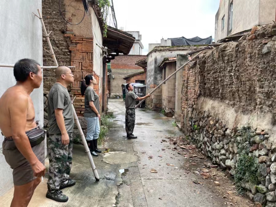 7月27日上午,透堡镇各村居开展河道情况及消除老房屋安全隐患点排查。