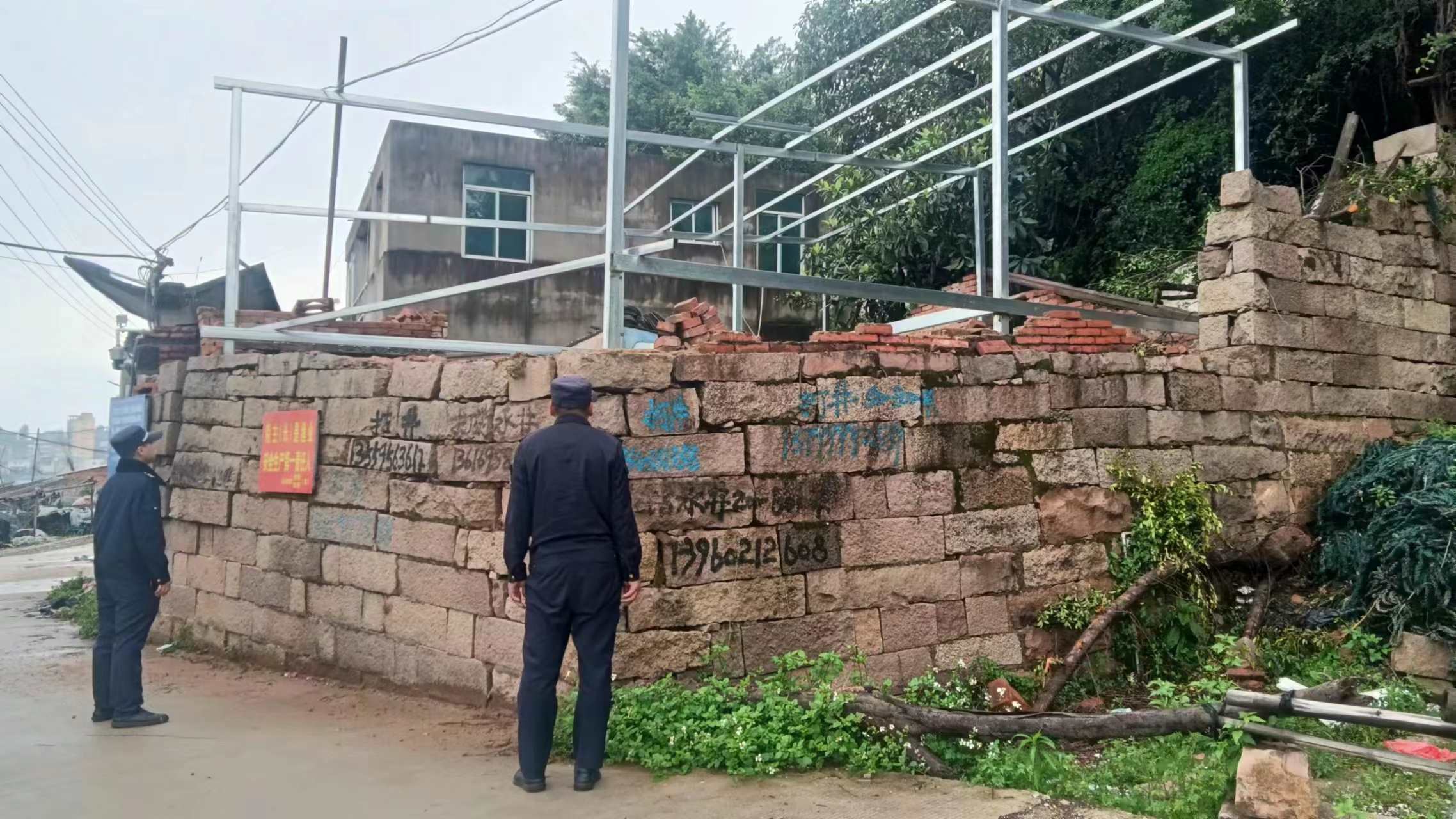 4月11日,坑园镇执法队在巡逻中发现颜岐村对面山和门边出现违建,坚决严厉打击,予以拆除。